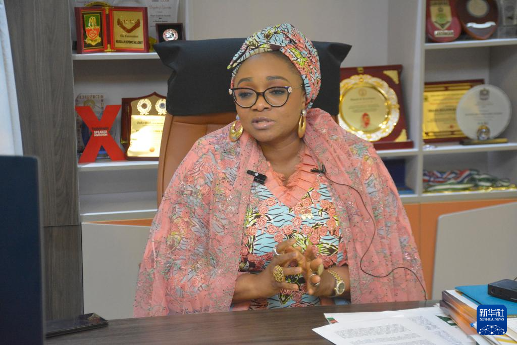 10月10日,尼日利亞婦女事務(wù)部長伊曼·蘇萊曼-易卜拉欣在赴華參加全球婦女峰會前在位于首都阿布賈的辦公室接受新華社記者專訪。新華社發(fā)(奧拉圖恩吉·薩利尤攝)