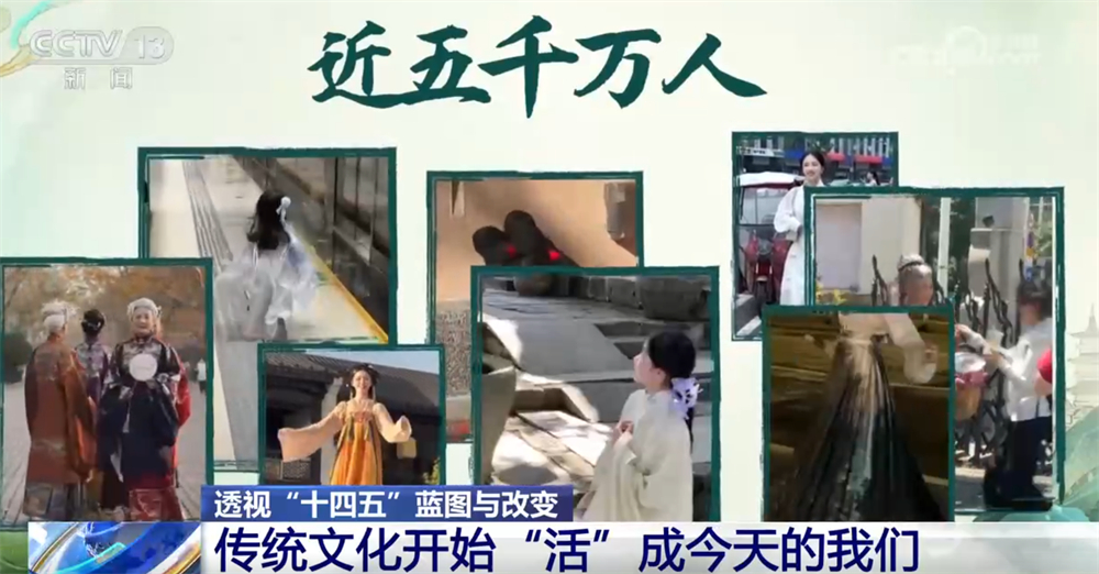 央視網(wǎng)消息:過去,我們在課本里背古詩、學(xué)歷史;今天,我們身著漢服走上街頭,在旅行打卡、短視頻創(chuàng)作中重新感受傳統(tǒng)。五千年的文化正在從書頁走向街頭,從展廳走進(jìn)生活,成為我們?nèi)粘5囊徊糠?。“十四五”的五年,讓文化真正“活”在了?dāng)下,也“活”進(jìn)了我們的生活。