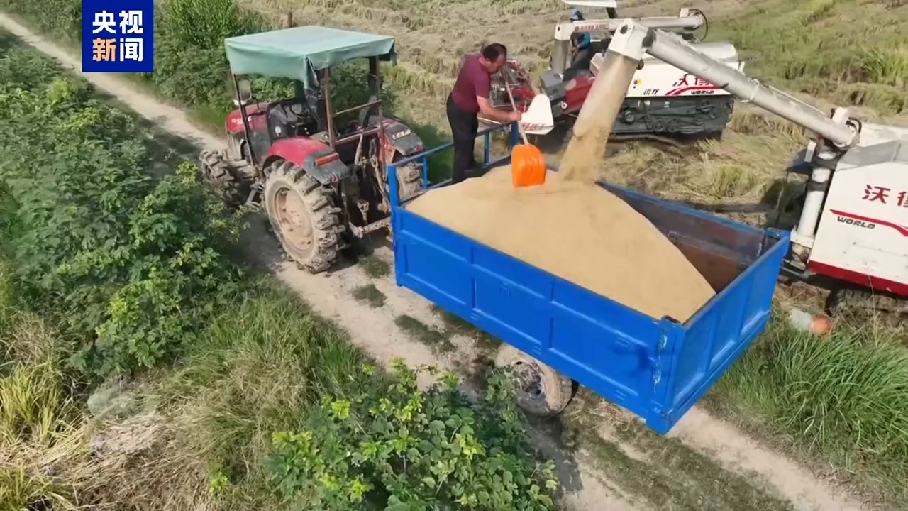 在湖北,種糧大戶正拉著剛收割的水稻趕往附近的烘干廠。烘干后的糧食進(jìn)入存儲(chǔ)環(huán)節(jié),數(shù)字化、綠色化的科技儲(chǔ)糧手段全力確保秋糧應(yīng)收盡收。