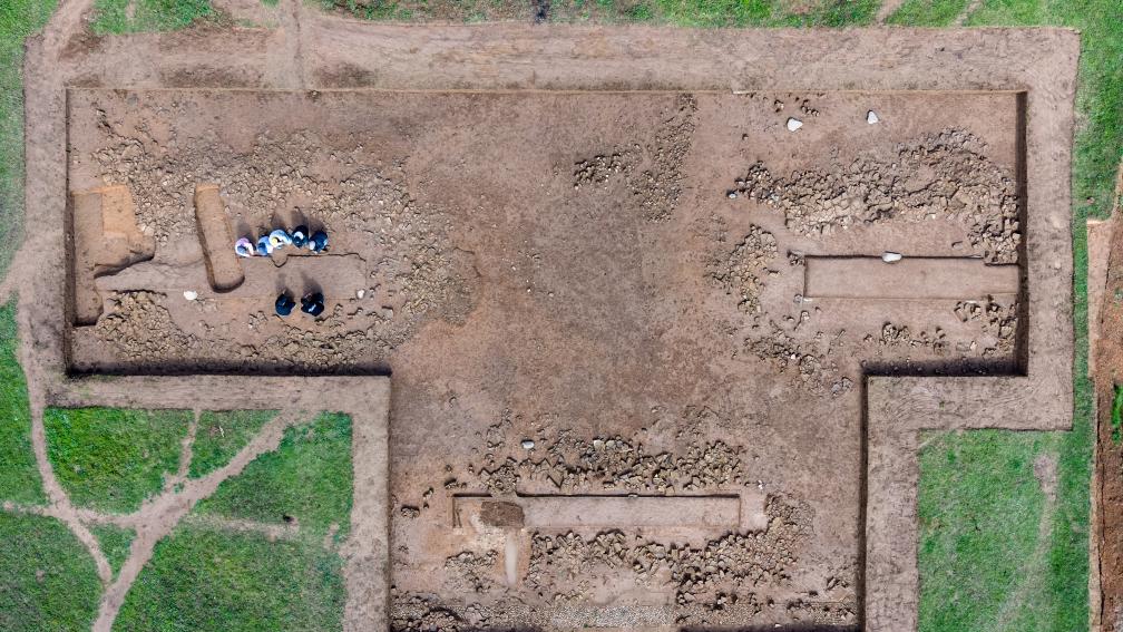 “兩個闕臺間留出的通道,正對門塾建筑大門,形成一條直指中心夯土臺的道路,初步判斷這就是當時祭祀活動的通道?!备拭C省文物考古研究所助理館員段濤說,2025年春季,他們在北側(cè)相同位置又發(fā)現(xiàn)了形制一致的闕門遺跡。
