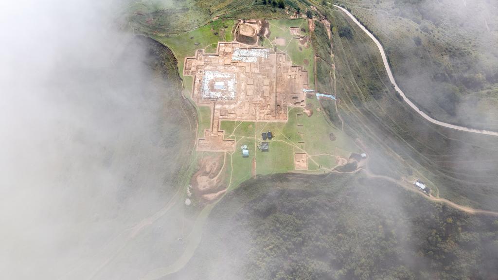 這是10月15日拍攝的甘肅省隴南市禮縣四角坪遺址考古發(fā)掘現(xiàn)場(無人機照片)。新華社記者 陳斌 攝