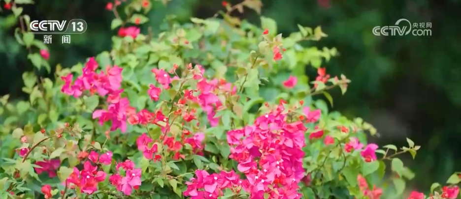 不同于北方秋日的層林盡染,這里的秋多了幾分獨(dú)有的鮮活暖意。漫步悠然園段步道,最先闖入視野的是成片熱烈盛放的三角梅,4萬(wàn)多株三角梅沿著步道護(hù)欄蜿蜒鋪開,即便已過(guò)盛夏,花瓣依舊飽滿鮮亮。