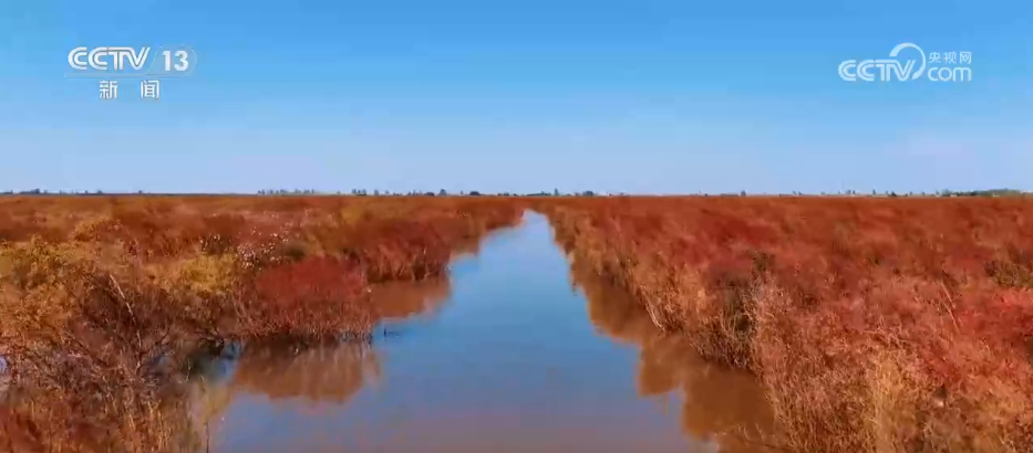 金秋時(shí)節(jié),在江蘇連云港臨洪河口,沿海灘涂濕地披上了多彩的秋裝。連片的堿蓬草在秋風(fēng)中次第變紅,層層疊疊。陽(yáng)光灑下,一株株堿蓬草晶瑩閃亮,紅得耀眼。微風(fēng)拂過(guò),枝葉搖曳生姿,在碧海藍(lán)天的映襯下,美不勝收。