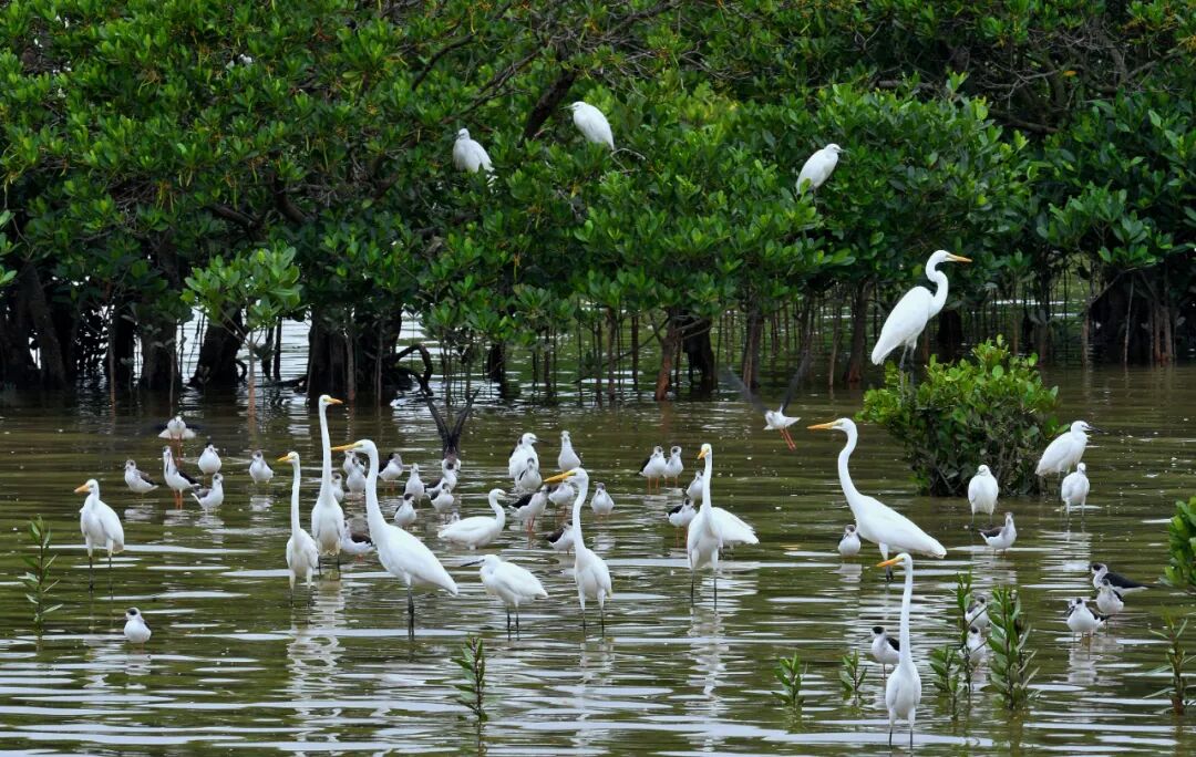 在福田紅樹(shù)林生態(tài)公園觀賞候鳥(niǎo)