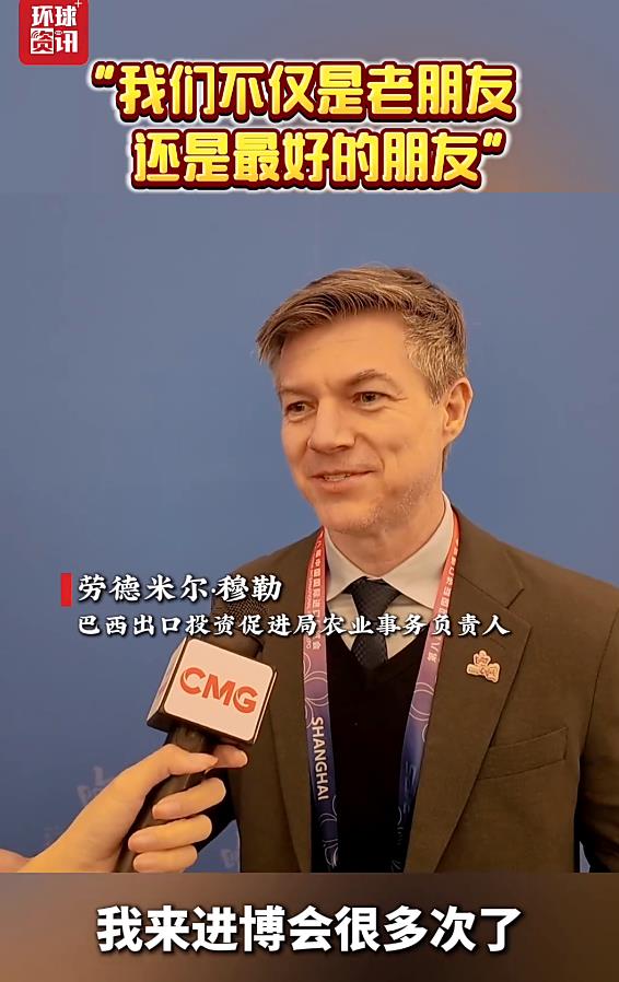 巴西出口投資促進(jìn)局農(nóng)業(yè)事務(wù)負(fù)責(zé)人勞德米爾·穆勒接受總臺(tái)環(huán)球資訊廣播記者采訪時(shí)表示,巴西每年都積極參與進(jìn)博會(huì),不僅是進(jìn)博會(huì)的老朋友,更是最好的朋友。