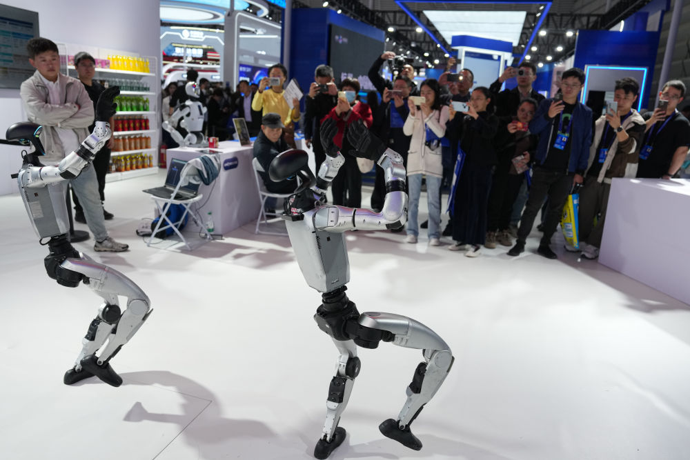 ↑ 11月6日,觀眾在2025年世界互聯(lián)網(wǎng)大會(huì)“互聯(lián)網(wǎng)之光”博覽會(huì)現(xiàn)場(chǎng)觀摩人形機(jī)器人跳舞。新華社記者 黃宗治 攝