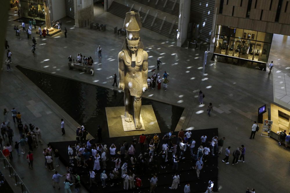 高達(dá)11米的拉美西斯二世巨像,擁有4500多年歷史的胡夫太陽船,古埃及法老圖坦卡蒙的黃金面具……大埃及博物館4日正式開館當(dāng)天一早,中國游客王治國就趕到位于埃及首都開羅西南吉薩金字塔附近的博物館參觀。展廳內(nèi)人頭攢動,首日參觀人數(shù)就達(dá)到約1.8萬?!斑@是埃及的一張文化名片?!彼f,“如今中埃之間不僅旅游、商貿(mào)往來熱絡(luò),文化交流活動也是豐富多彩。”