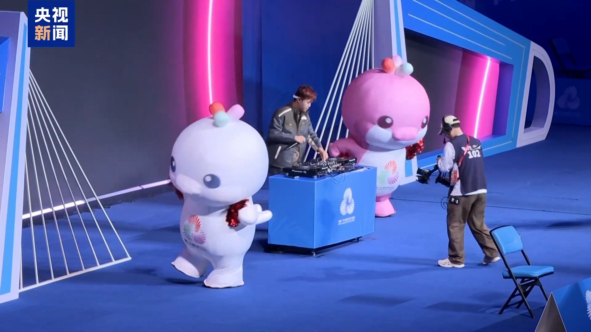 除了開幕式上的布偶吉祥物,體育館里的充氣吉祥物扮演者,則是各個場館的大學(xué)生志愿者。相比于厚重的毛絨材質(zhì)玩偶服,志愿者的充氣服裝更顯復(fù)雜。不過,觀眾不太能看出其中的差別。