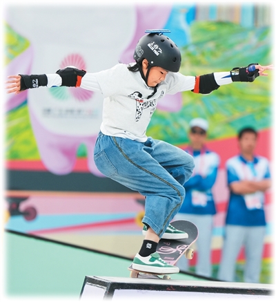 上海隊(duì)選手徐琳瀧在滑板比賽中。