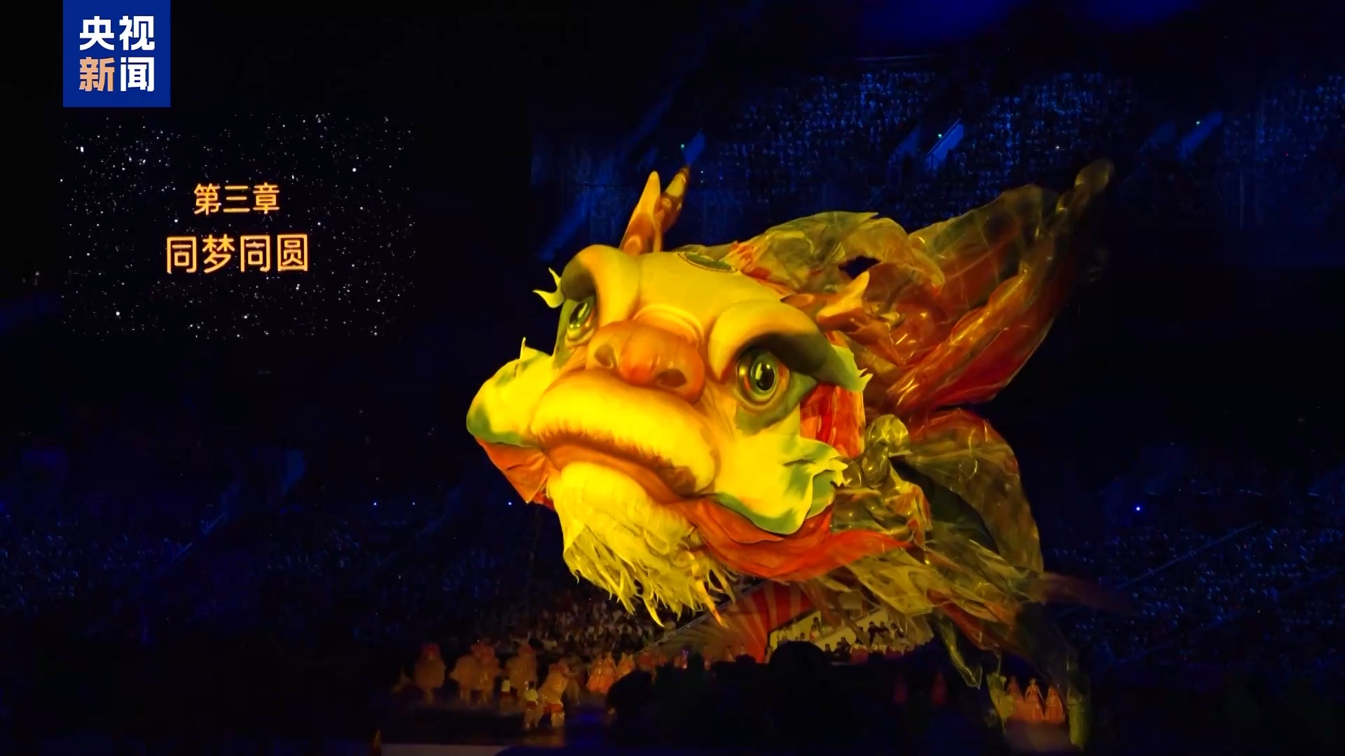 十五運(yùn)會開幕式美術(shù)總設(shè)計 巨型鰲魚原創(chuàng)設(shè)計者 尚天寶:這只鰲魚的造型和傳統(tǒng)意義上的鰲魚有些許不同,保留了龍頭魚身,但是尾巴部分我們做了特殊的處理,把這種鳳尾鯉魚的大尾巴嫁接了進(jìn)來,魚鰭、魚身參考了金龍魚的魚身,讓它更好看,色彩上更嶺南,發(fā)揮了嶺南的濃郁用色的極致。