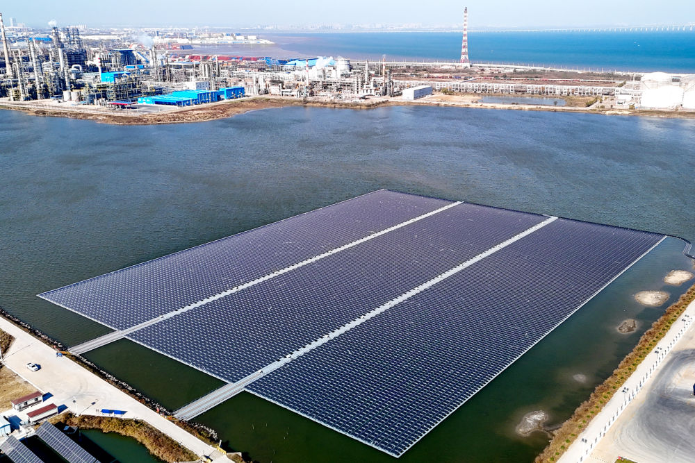 11月18日拍攝的中國石化青島煉化公司漂浮式光伏項目。新華社發(fā)(張進剛攝)