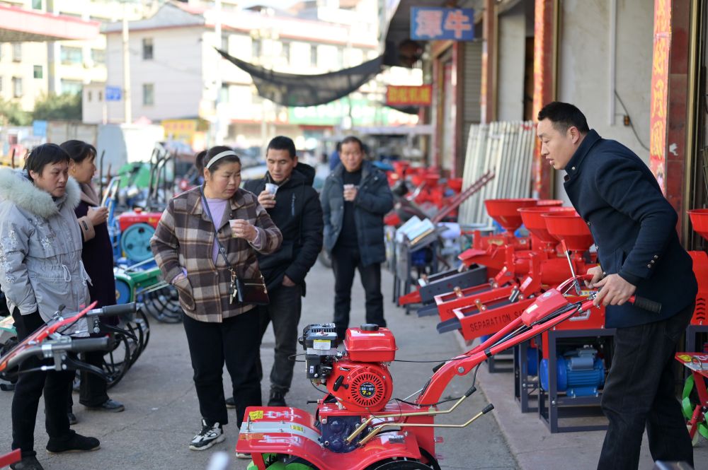 2025年2月9日,在湖南省婁底市雙峰縣農(nóng)機(jī)市場(chǎng),農(nóng)戶(hù)在選購(gòu)小農(nóng)機(jī)。新華社發(fā)(李建新 攝)