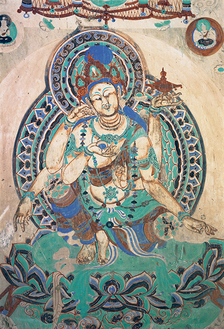 ▲莫高窟第384窟,北壁佛龕外東側(cè)繪制的如意輪觀音。(圖片來(lái)源:敦煌研究院官網(wǎng))