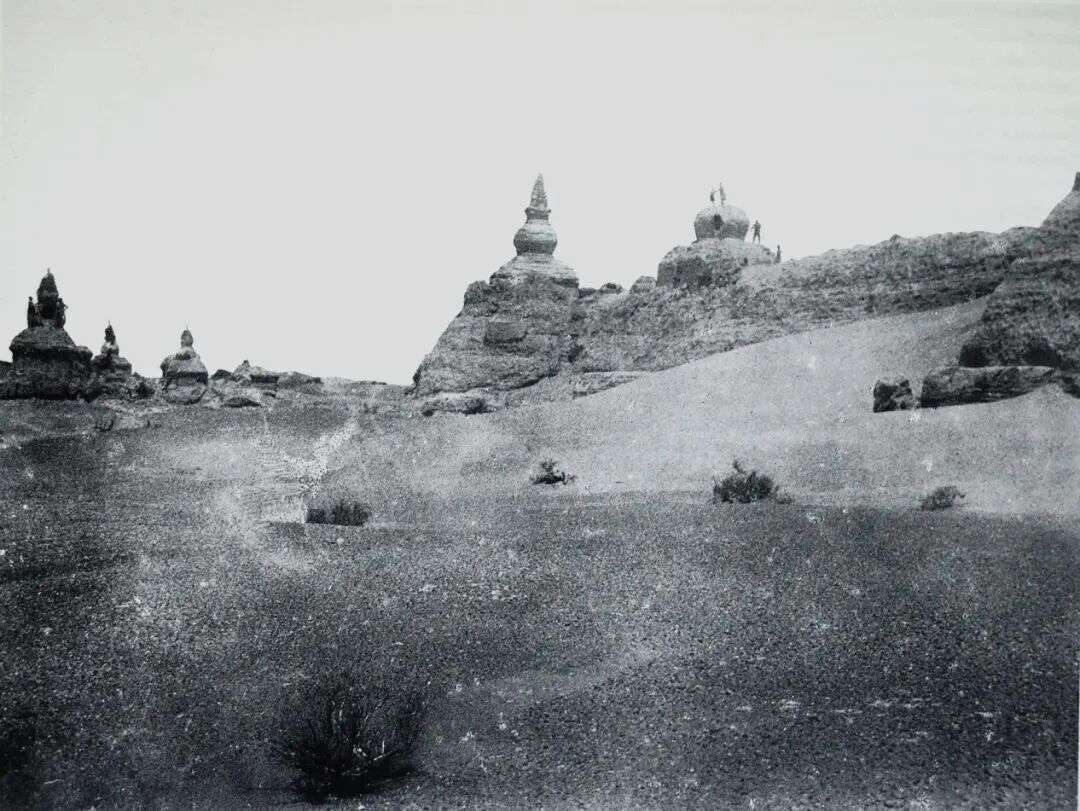 ▲黑水城城墻西北角的佛塔(1908年)。(圖片來(lái)源:澎湃網(wǎng))