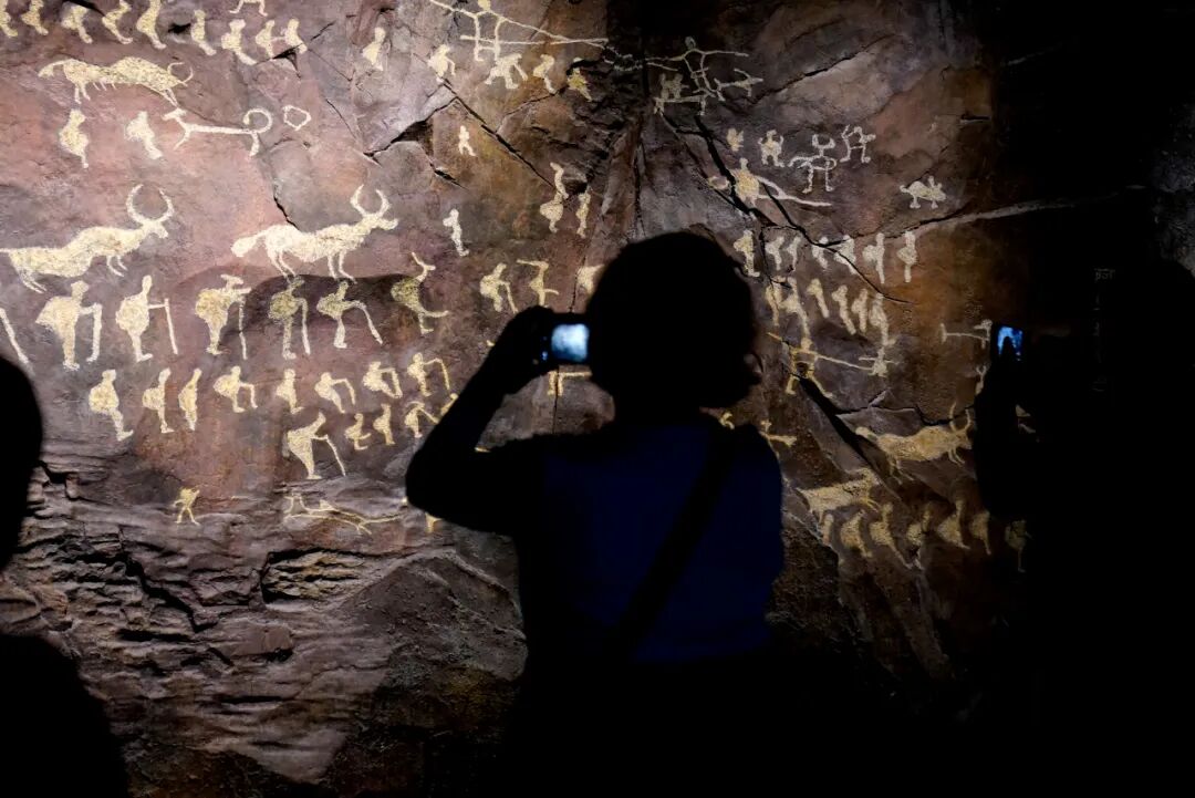 2024年10月19日,西藏拉薩,參觀(guān)者在西藏博物館內(nèi)拍攝巖畫(huà)。 中新社記者 李林 攝