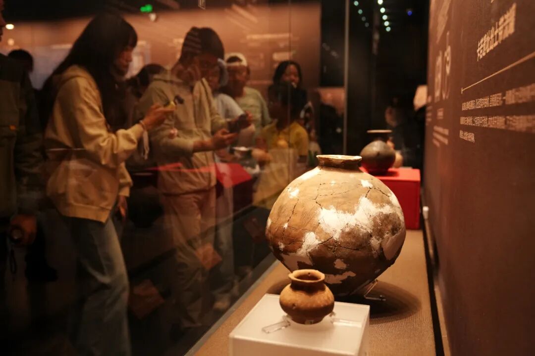 2025年7月15日,在位于拉薩的西藏博物館,卡若遺址出土的陶器吸引觀(guān)眾。 中新社記者 張祥毅 攝