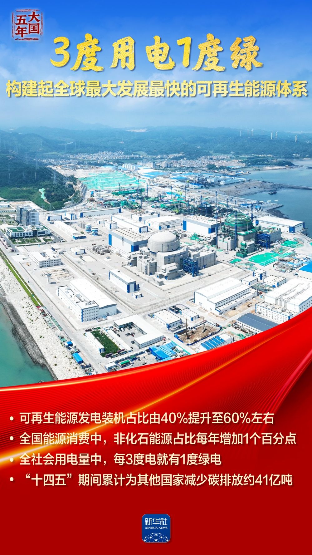 全社會(huì)用電量中,每3度電就有1度綠電;風(fēng)電光伏裝機(jī)歷史性超過火電,新能源發(fā)電增量占全國新增發(fā)電量近一半;全國統(tǒng)一電力市場(chǎng)加快構(gòu)建,塞北的風(fēng)點(diǎn)亮灣區(qū)的燈……“十四五”期間,我國能源建設(shè)逐“綠”向“新”,筑牢能源安全的堅(jiān)實(shí)底座,繪就民生幸福的溫暖底色,夯實(shí)“雙碳”目標(biāo)的實(shí)現(xiàn)基礎(chǔ)。