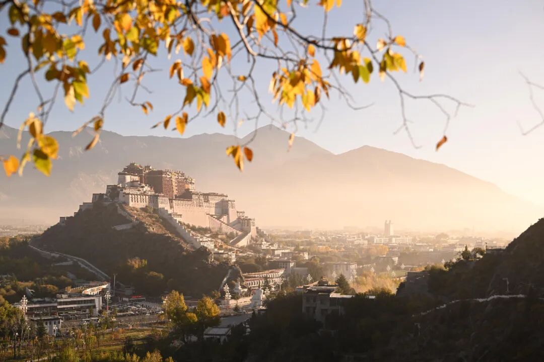 2025年10月22日清晨,薄霧尚未散盡,西藏拉薩團(tuán)結(jié)公園的黃葉與布達(dá)拉宮相映成趣,勾勒出高原秋日的獨(dú)特畫卷。中新社記者 貢嘎來松 攝