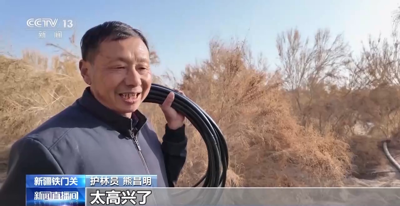 眼下這個季節(jié),正是冬季巡林最忙碌的時候,新疆鐵門關市營盤鎮(zhèn)53歲的護林員熊昌明,每天早晨都會和同事在泵房會合,一起去檢修梭梭林里的滴灌帶。