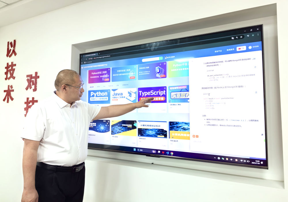 中科銳眼(天津)科技有限公司負責人介紹數(shù)字技能應(yīng)用的“虛擬課堂”(石鑫 攝)