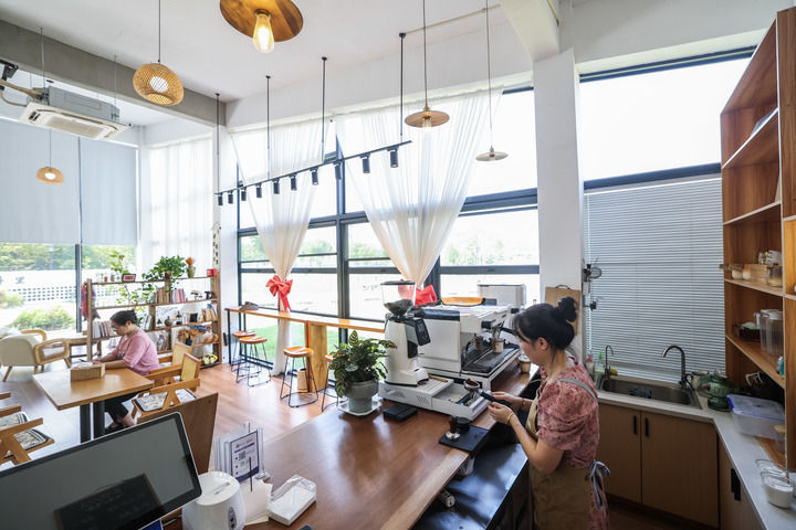 2025年8月27日在浙江省湖州市長興縣虹星橋鎮(zhèn)宋高村稻香伴日營地內拍攝的咖啡屋。這是宋高村做優(yōu)全域土地整治后的農文旅新嘗試,集餐飲、旅游、農業(yè)和文化于一體。新華社記者 徐昱 攝