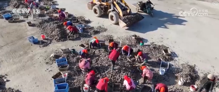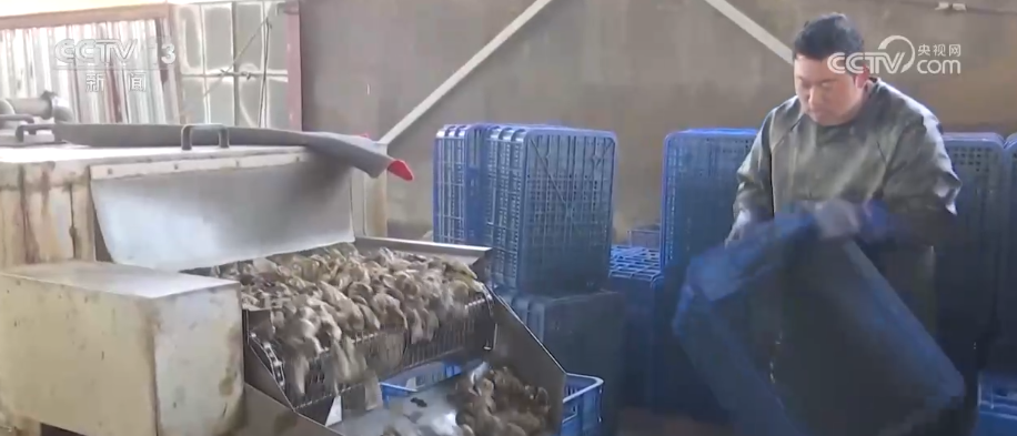 某水產(chǎn)公司負責(zé)人劉浩介紹,分揀之后就凈化,凈化之后用清洗機清洗,把泥沙清洗掉然后裝袋打包,幾乎每天加工五六萬斤。