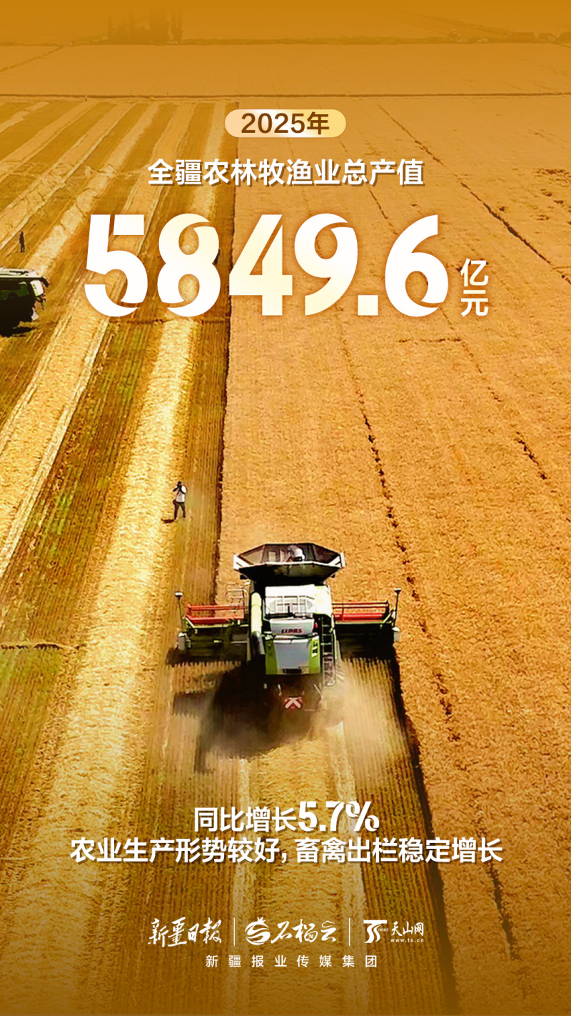 全疆農林牧漁業(yè)總產(chǎn)值5849.6億元,同比增長5.7%,農業(yè)生產(chǎn)形勢較好,畜禽出欄穩(wěn)定增長。