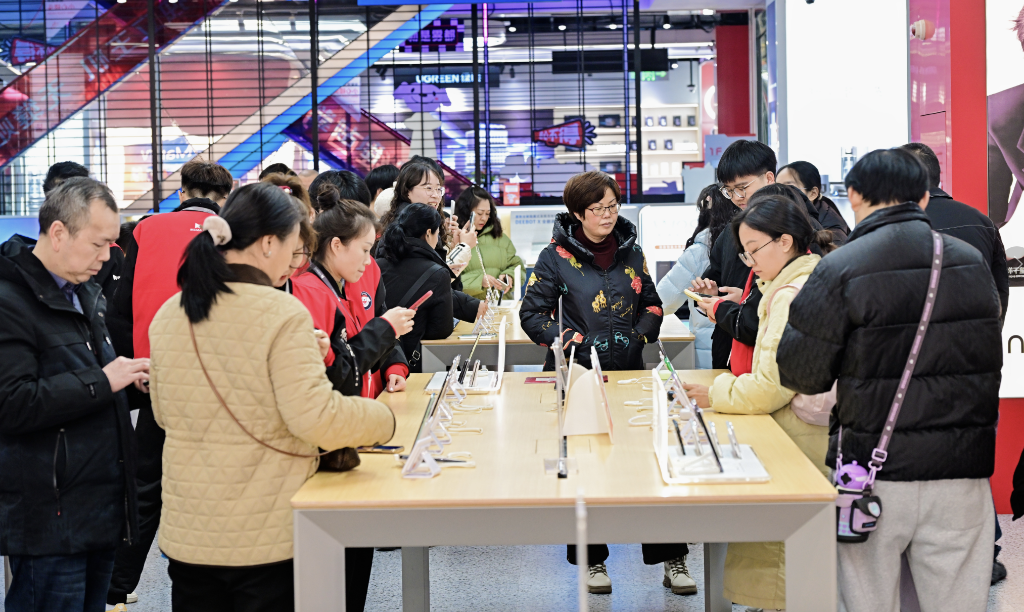 2026年“新國(guó)補(bǔ)”落地,消費(fèi)者在重慶京東MALL選購手機(jī)。(受訪者供圖)