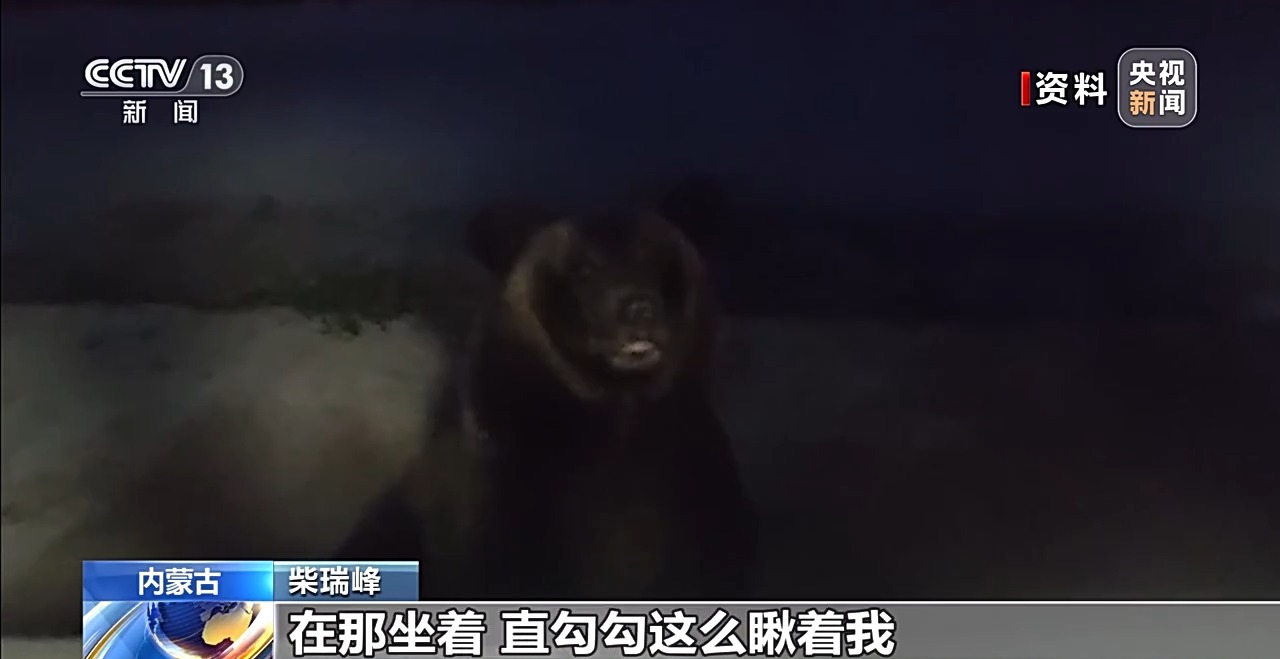 柴瑞峰:我就拿手機(jī)往后面一照,突然看見(jiàn)一只黑熊,它離我就四五米遠(yuǎn)的距離上,在那坐著,直勾勾這么瞅著我,這個(gè)手機(jī)的亮光,照在這個(gè)熊的眼睛上,它冒那個(gè)光。當(dāng)時(shí)心里就特別特別害怕,跟前有一棵樹(shù),我順著那棵樹(shù)爬上去了。