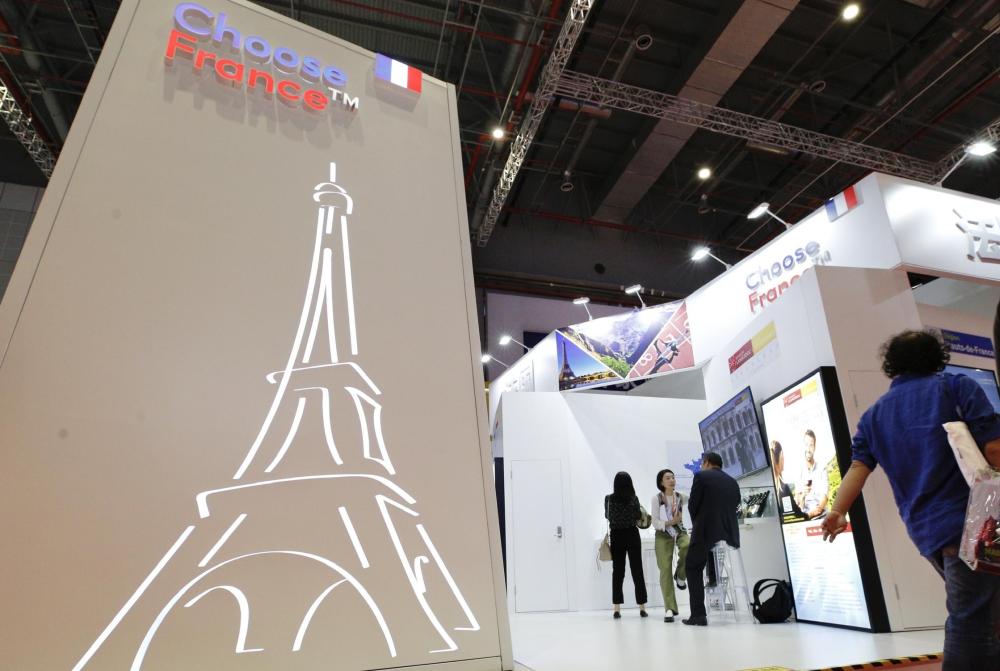 2019年11月5日,第二屆中國國際進口博覽會在上海國家會展中心開幕。這是參觀者走過法國國家館。新華社記者 張玉薇 攝