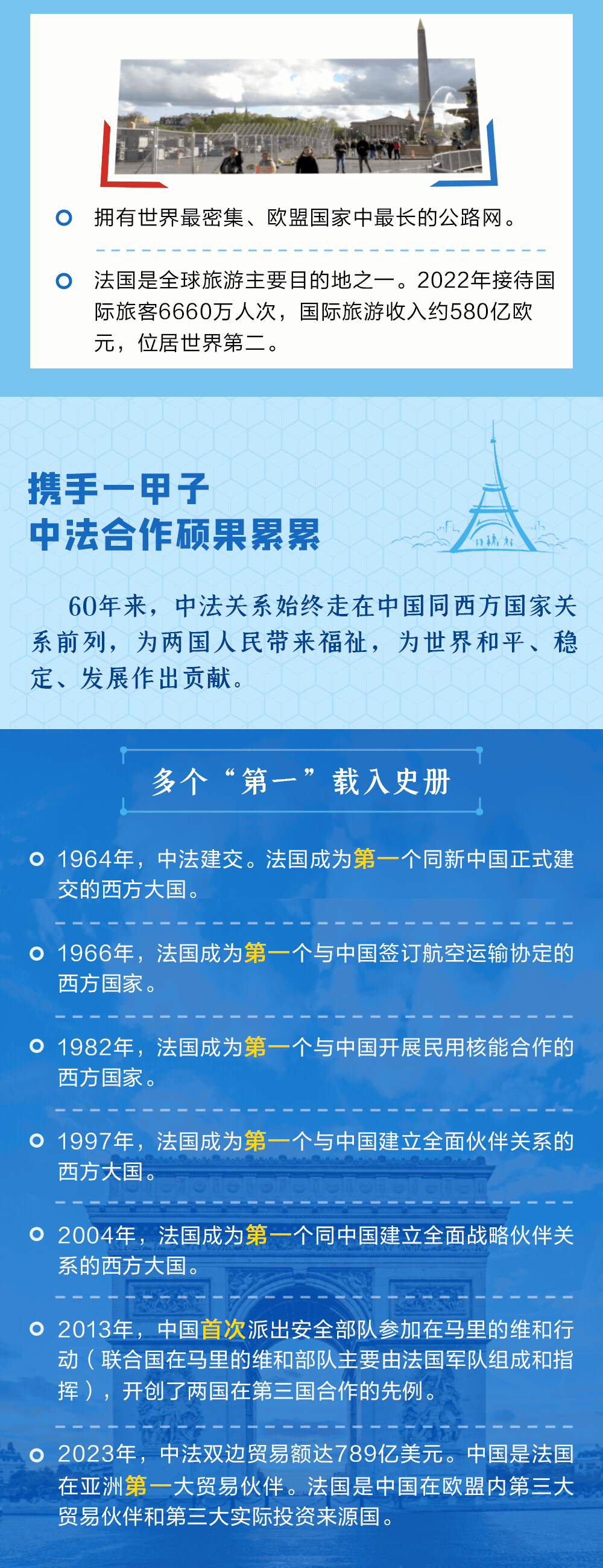 今年是中法建交60周年。60年來(lái),秉承獨(dú)立自主、相互理解、高瞻遠(yuǎn)矚、互利共贏的“中法精神”,兩國(guó)關(guān)系走過(guò)了一段極不尋常的歷程。央視網(wǎng)《聯(lián)播+》特推出長(zhǎng)圖,與您一同了解。