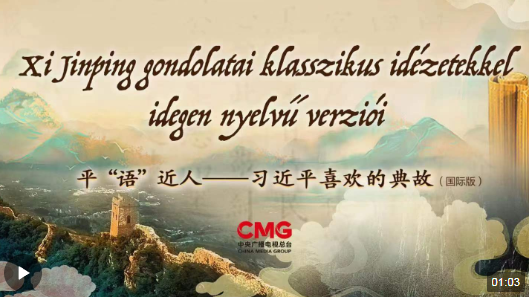 在中國(guó)國(guó)家主席習(xí)近平將對(duì)匈牙利進(jìn)行國(guó)事訪問(wèn)之際,由中央廣播電視總臺(tái)制作的《平“語(yǔ)”近人——習(xí)近平喜歡的典故》(國(guó)際版),將于當(dāng)?shù)貢r(shí)間5月8日在匈牙利國(guó)家電視臺(tái)啟播。當(dāng)?shù)貢r(shí)間5月4日起,節(jié)目的預(yù)告及宣傳片陸續(xù)在匈牙利民族報(bào)網(wǎng)站、佩斯新聞網(wǎng)、南佩斯在線網(wǎng)、西峰網(wǎng)、東部生活網(wǎng)等匈牙利多家主流媒體平臺(tái)滾動(dòng)播出。