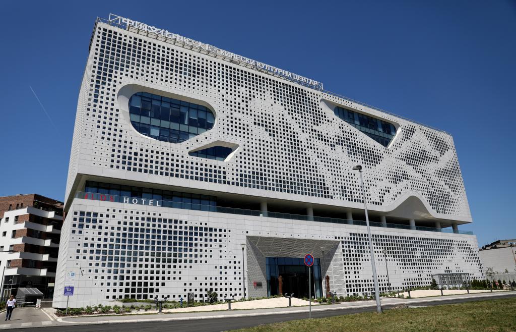 這是2024年4月28日在塞爾維亞貝爾格萊德拍攝的中國(guó)文化中心。新華社記者李穎攝