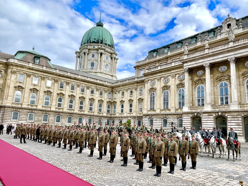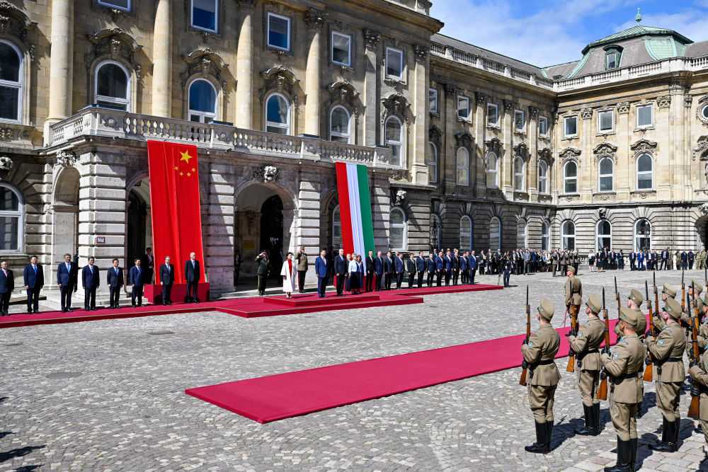 初夏時節(jié)的布達佩斯陽光明媚,古老宏偉的布達王宮莊嚴矗立,中匈兩國國旗相映成輝。習近平和夫人彭麗媛乘坐的國賓車隊在匈牙利禮賓馬隊護衛(wèi)下緩緩駛入布達王宮內庭。舒尤克總統(tǒng)夫婦和歐爾班總理夫婦熱情迎接。