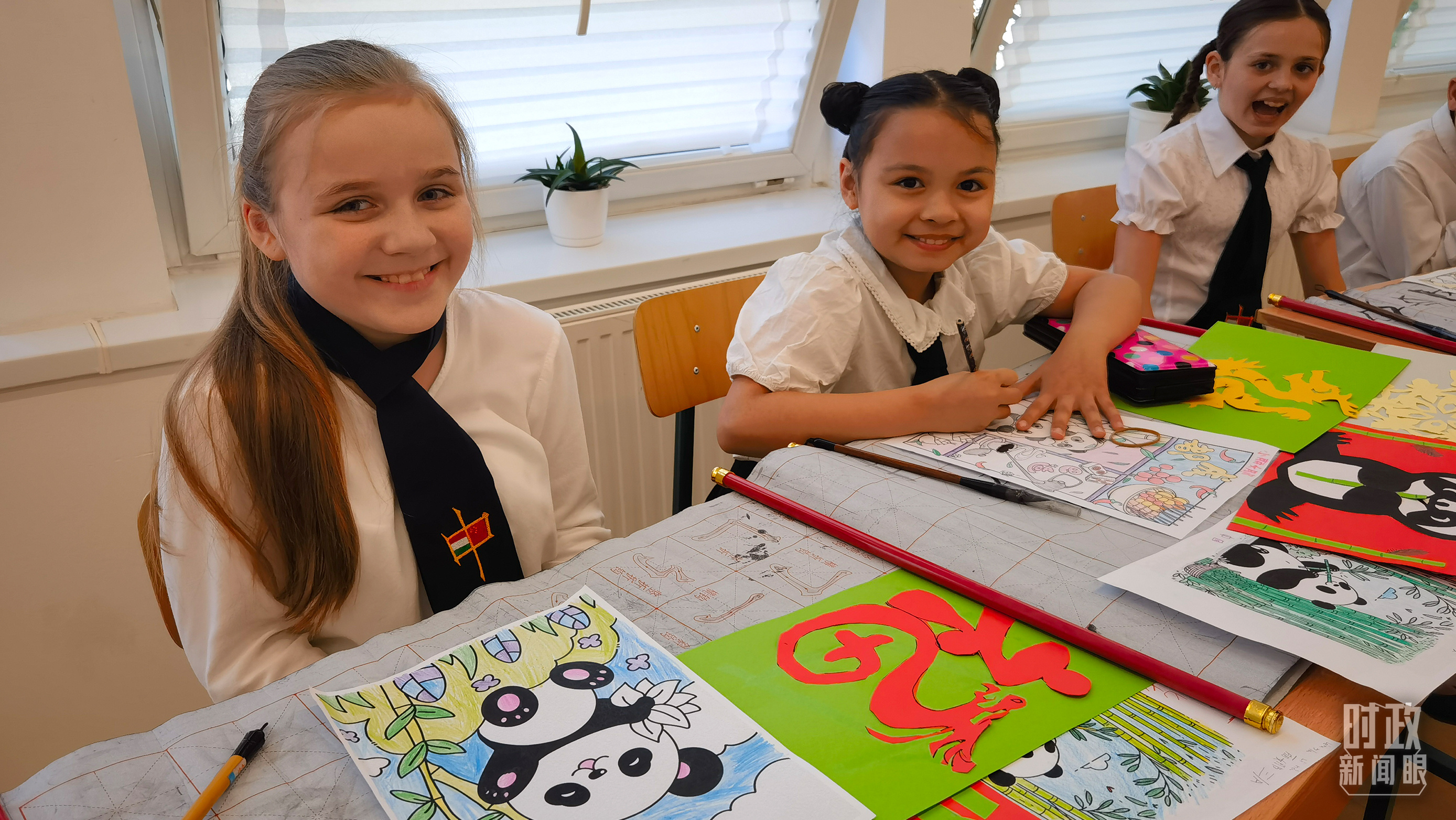 匈中雙語(yǔ)學(xué)校中國(guó)傳統(tǒng)文化課堂上的孩子們。(總臺(tái)央視記者凌楓拍攝)
