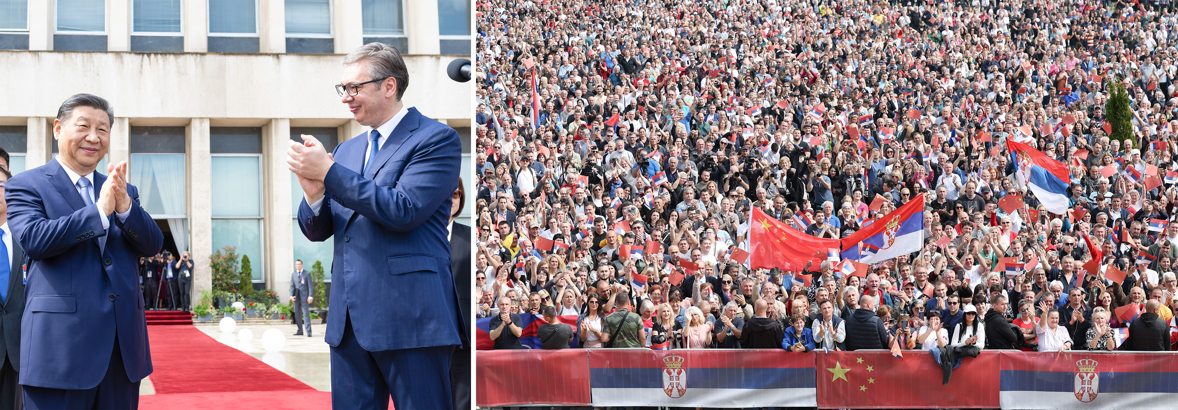 訪問塞爾維亞,習近平主席宣布中方支持新時代中塞命運共同體建設的首期6項務實舉措。武契奇總統(tǒng)表示,塞方堅定支持并將積極參與習近平主席提出的全球發(fā)展倡議、全球安全倡議、全球文明倡議,同中方密切多邊戰(zhàn)略協(xié)作,共同反對霸權強權,維護聯(lián)合國憲章宗旨,捍衛(wèi)國際公平正義。