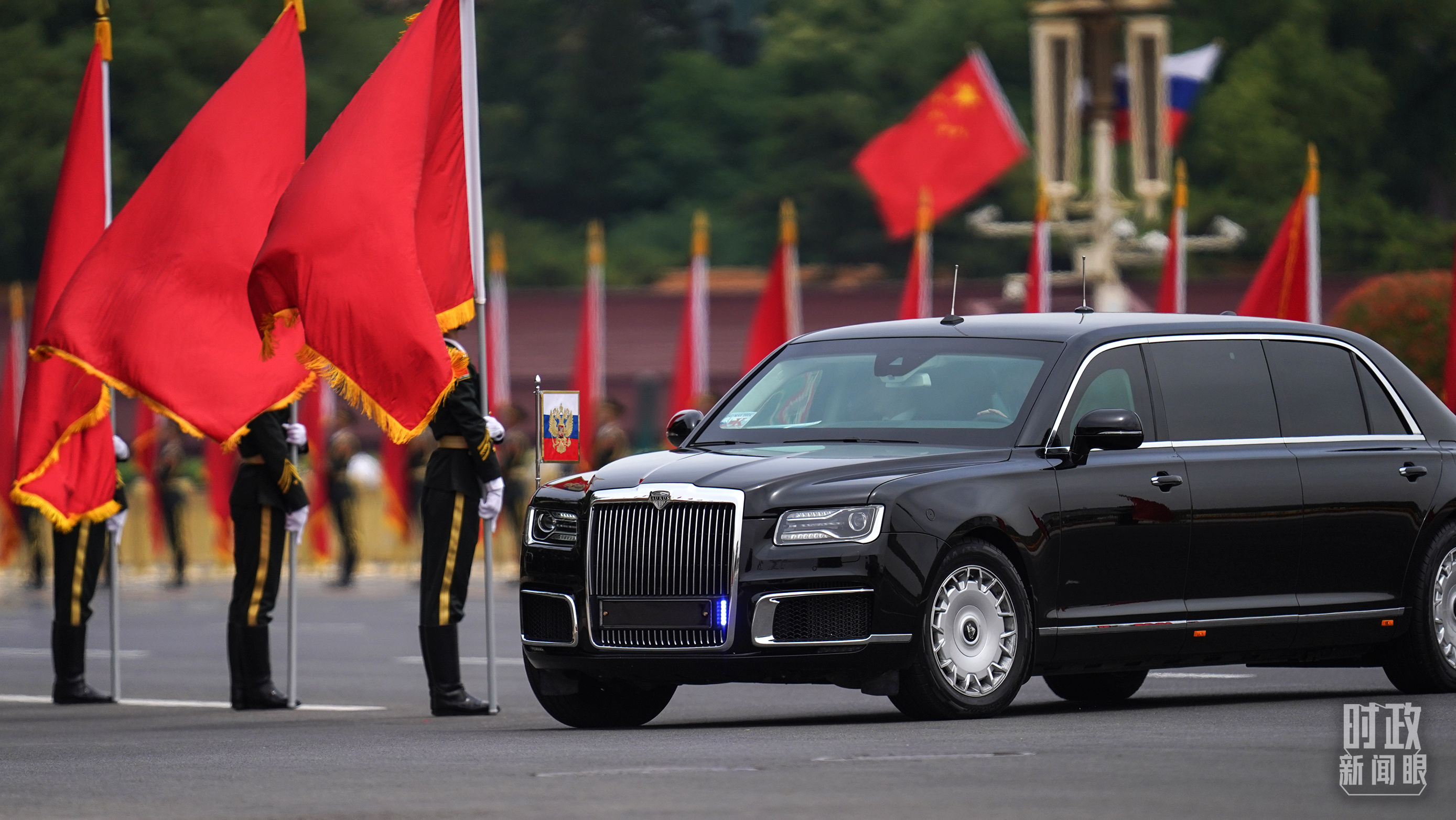 普京總統(tǒng)乘車抵達歡迎儀式現(xiàn)場。(總臺國廣記者李晉拍攝)