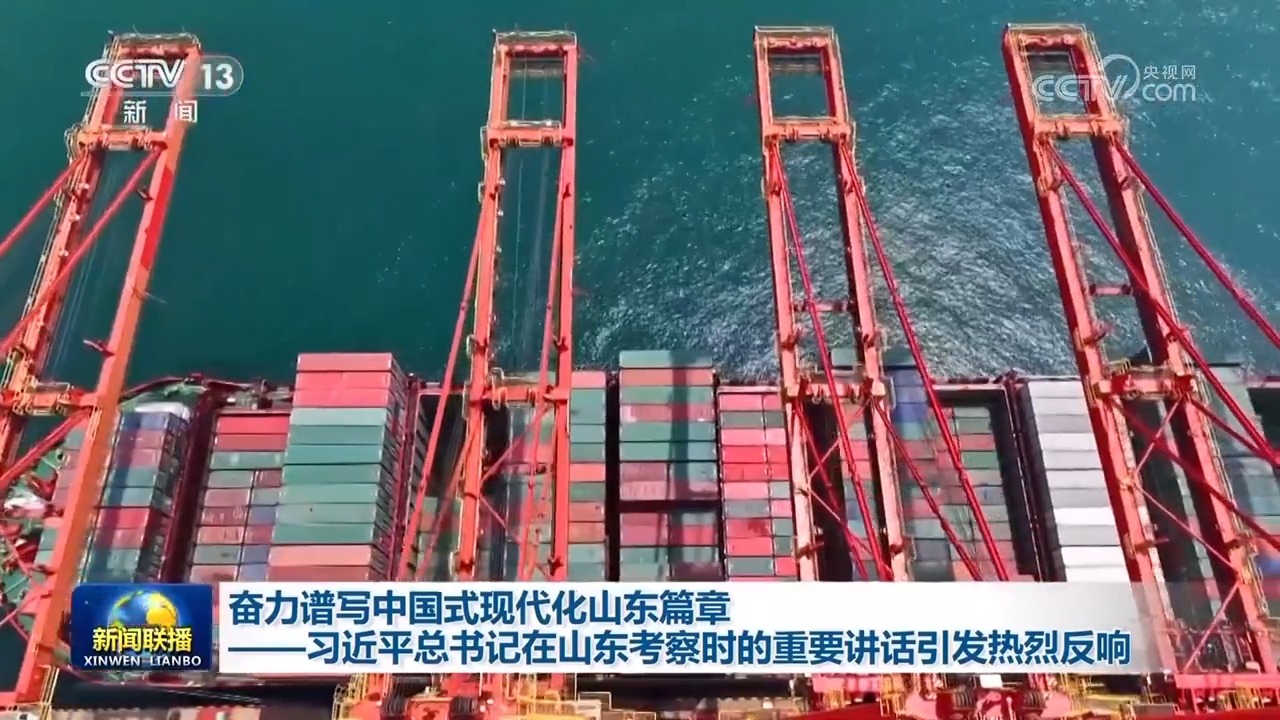 黃海之濱,山東日照港全自動(dòng)化集裝箱碼頭上無人駕駛集裝箱卡車往來穿梭。習(xí)近平總書記首先來到這里考察,他指出,日照港近年來推進(jìn)科技創(chuàng)新,將傳統(tǒng)港口改造升級(jí)為現(xiàn)代化港口,不僅貨物吞吐量躋身全國(guó)前列,還積累了通過傳統(tǒng)產(chǎn)業(yè)改造升級(jí)發(fā)展新質(zhì)生產(chǎn)力的經(jīng)驗(yàn),值得肯定。