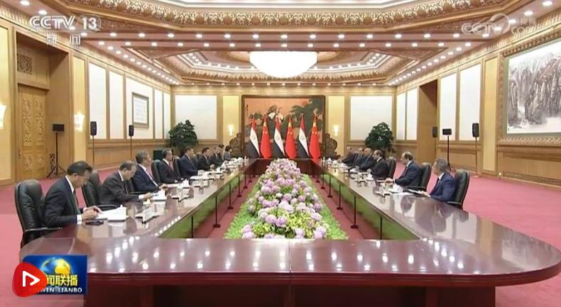 5月29日下午,國(guó)家主席習(xí)近平在北京人民大會(huì)堂同來(lái)華出席中國(guó)-阿拉伯國(guó)家合作論壇第十屆部長(zhǎng)級(jí)會(huì)議開(kāi)幕式并進(jìn)行國(guó)事訪問(wèn)的埃及總統(tǒng)塞西舉行會(huì)談。
