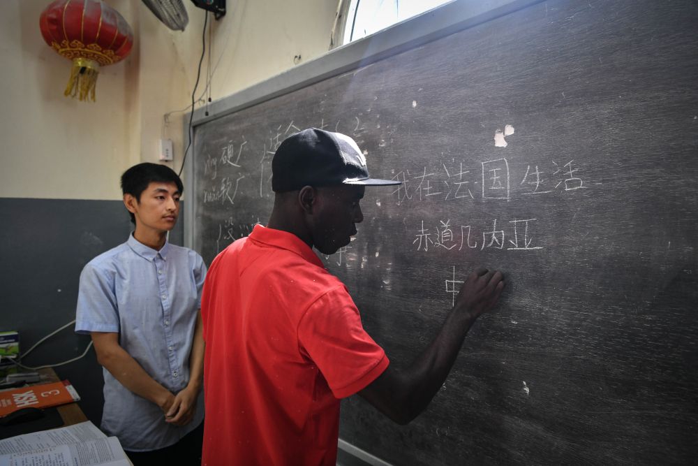 5月17日,在赤道幾內(nèi)亞國立大學(xué),當(dāng)?shù)貙W(xué)生在孔子學(xué)院上中文課。