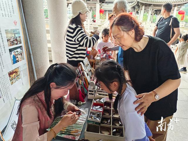 廣濟(jì)橋上,“潮玩古城·潮州非遺集市”活動吸引游客體驗(yàn)。