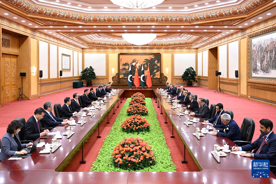 6月7日下午,國(guó)家主席習(xí)近平在北京人民大會(huì)堂會(huì)見來(lái)華正式訪問(wèn)的巴基斯坦總理夏巴茲。新華社記者 黃敬文 攝