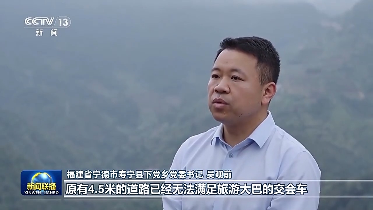 福建省寧德市壽寧縣下黨鄉(xiāng)黨委書(shū)記 吳觀前:原有4.5米的道路已經(jīng)無(wú)法滿足旅游大巴的交會(huì)車(chē),農(nóng)村道路單改雙,交通更便捷了,四通八達(dá)的農(nóng)村公路是我們的致富路、振興路。