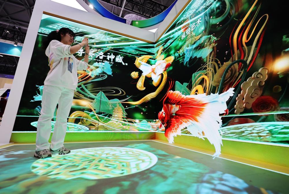 2024年4月1日,一名觀眾在安徽合肥舉辦的2024國際顯示技術(shù)大會上體驗合肥京東方展出的一款裸眼3D快速拆裝折角屏。目前,新型顯示產(chǎn)業(yè)在安徽已形成全產(chǎn)業(yè)鏈布局。