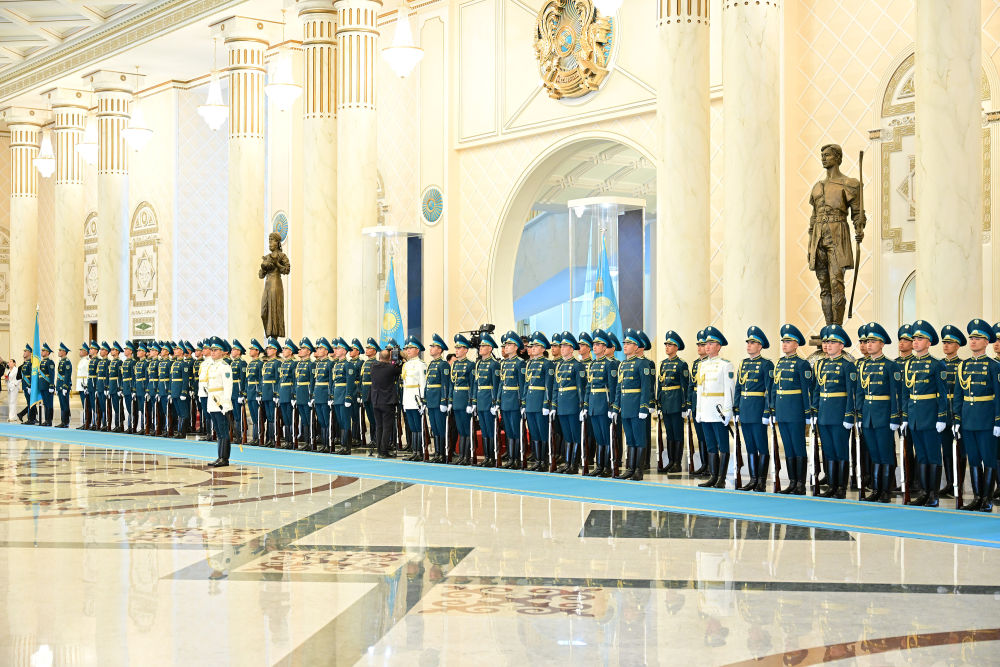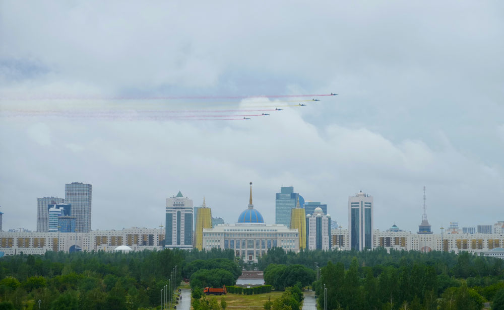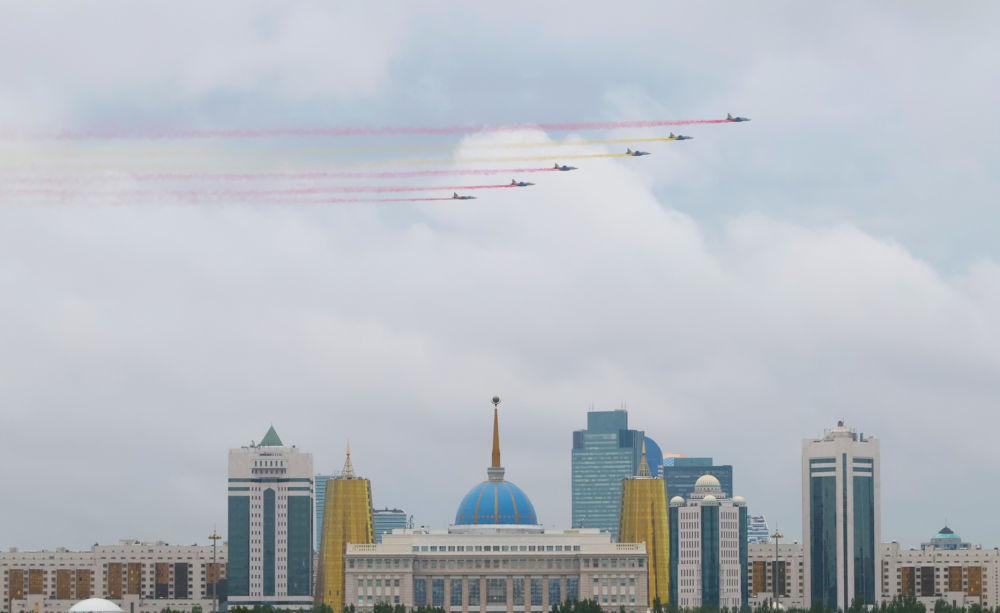 當?shù)貢r間3日,國家主席習(xí)近平在阿斯塔納出席哈薩克斯坦總統(tǒng)托卡耶夫舉行的歡迎儀式。