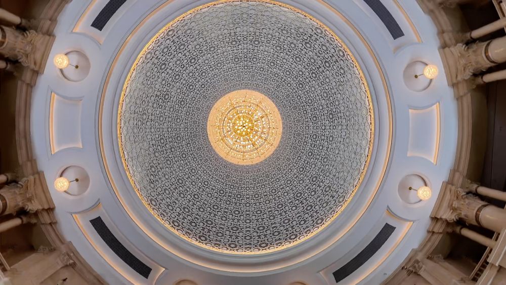 從圓形穹頂?shù)浇饘夔U空造型,塔吉克斯坦議會(huì)大樓體現(xiàn)了濃郁的塔吉克民族風(fēng)格,也獲得當(dāng)?shù)孛癖姷母叨瓤隙ā?/p>