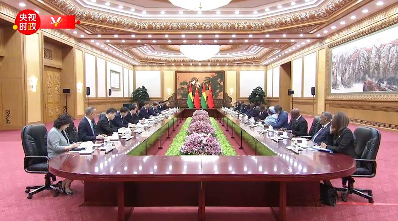 7月10日下午,國家主席習近平在北京人民大會堂同來華進行國事訪問的幾內亞比紹總統(tǒng)恩巴洛舉行會談。