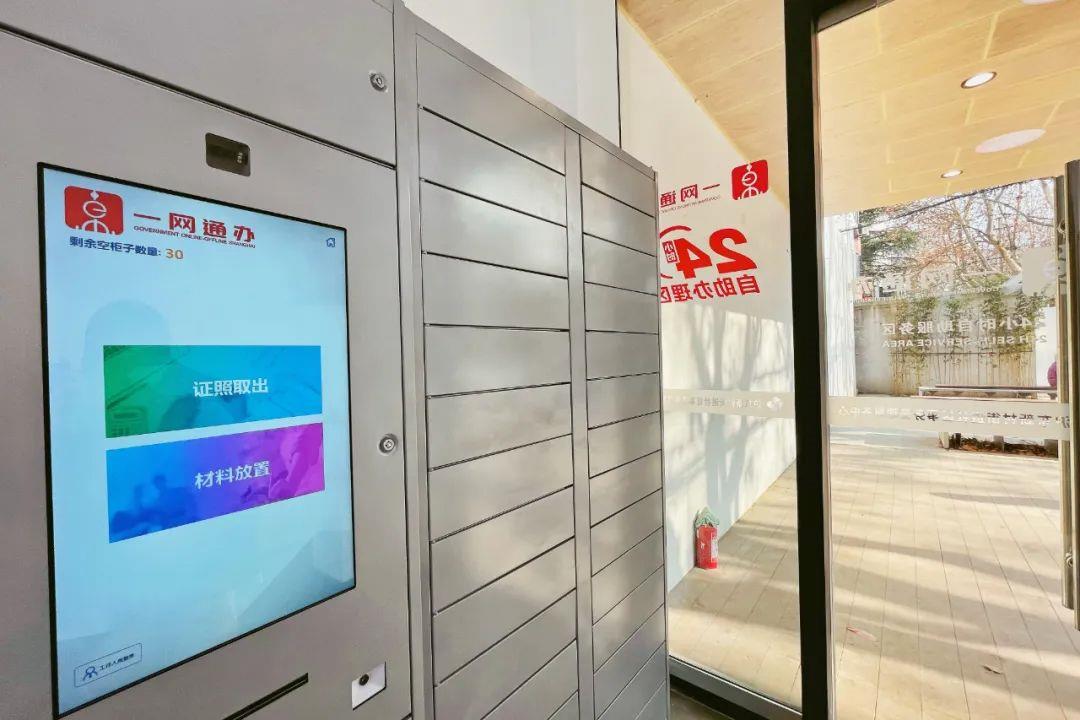 此外,一旁的“智能文件柜”實(shí)現(xiàn)了居民和社區(qū)事務(wù)受理中心24小時(shí)的材料交接——比如像需要提交預(yù)審材料的事項(xiàng),居民可以利用“智能文件柜”進(jìn)行存件,事項(xiàng)辦結(jié)后,憑短信通知前來(lái)領(lǐng)取相關(guān)材料,真正實(shí)現(xiàn)了“不見(jiàn)面辦理”,也方便居民在任意時(shí)間存取文件。