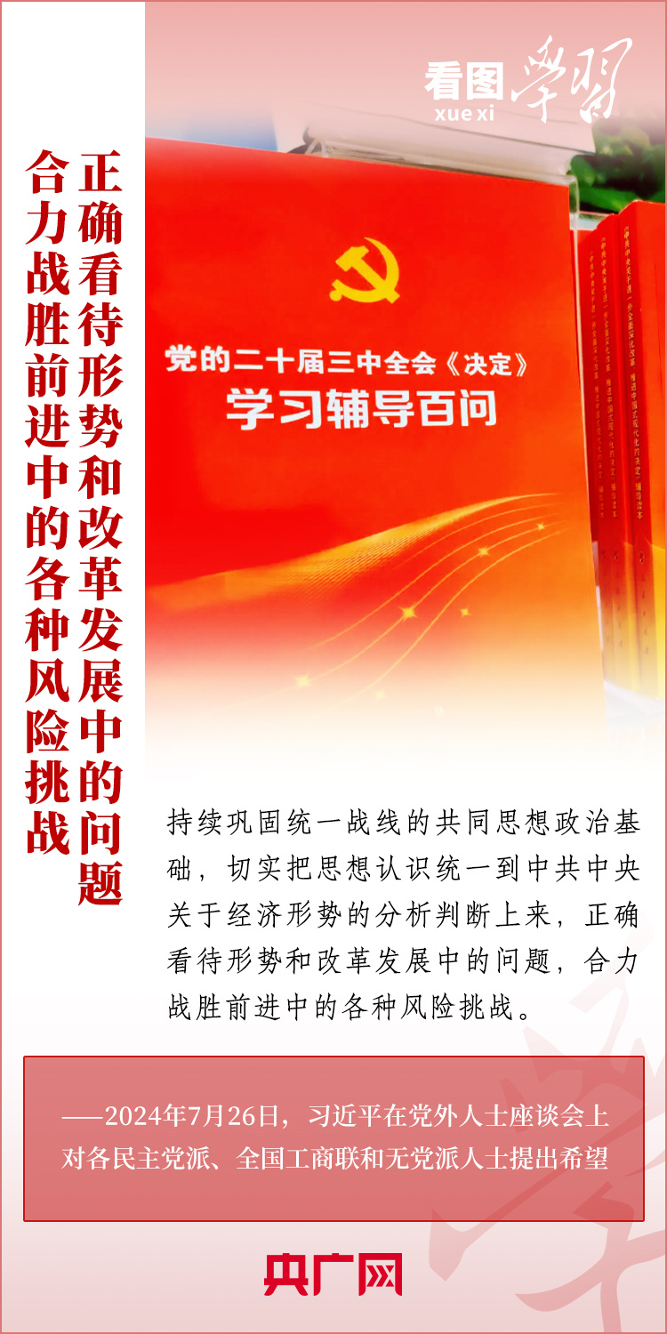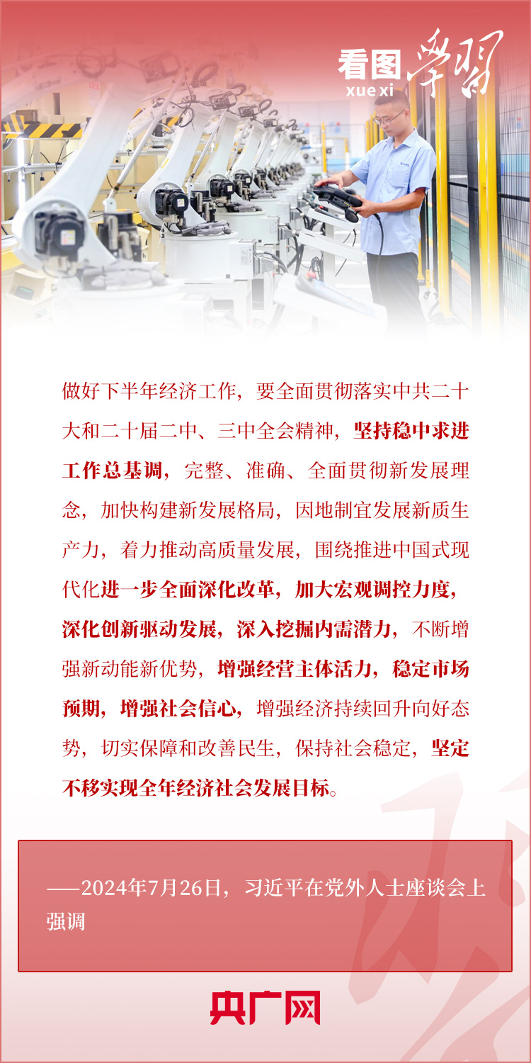 中共中央7月26日在中南海召開黨外人士座談會(huì),就當(dāng)前經(jīng)濟(jì)形勢(shì)和下半年經(jīng)濟(jì)工作聽取各民主黨派中央、全國(guó)工商聯(lián)負(fù)責(zé)人和無黨派人士代表的意見和建議。習(xí)近平總書記主持座談會(huì)并發(fā)表重要講話,對(duì)做好下半年經(jīng)濟(jì)工作作出重要部署,并對(duì)黨外人士提出3點(diǎn)希望。一起來學(xué)習(xí)!