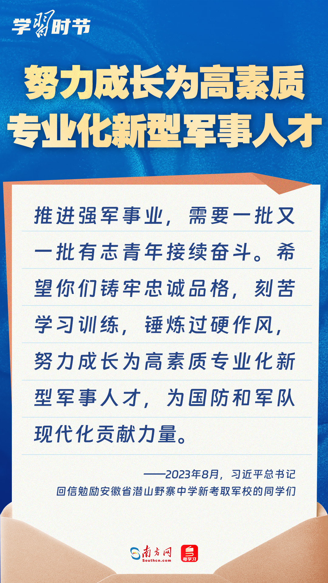強(qiáng)國(guó)必須強(qiáng)軍,軍強(qiáng)才能國(guó)安。黨的十八大以來(lái),習(xí)近平總書記始終牽掛一線官兵冷暖,高度重視我軍院校教育和人才培養(yǎng)工作,多次給部隊(duì)官兵、軍校學(xué)員等回信。讓我們一起重溫總書記的諄諄寄語(yǔ)!